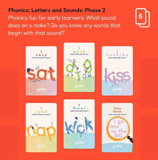 Yoto Card Phonics: Letters & Sounds: Phase 2 Pack of 6 Cards