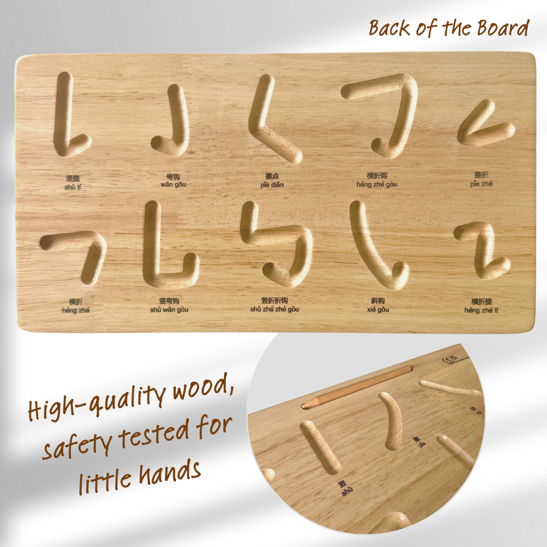 Get the Chinese Yoto Card together with our Chinese Strokes Tracing Board for an additional $12. With 20 strokes to practice, the board is reversible and crafted from safely tested, natural wood.