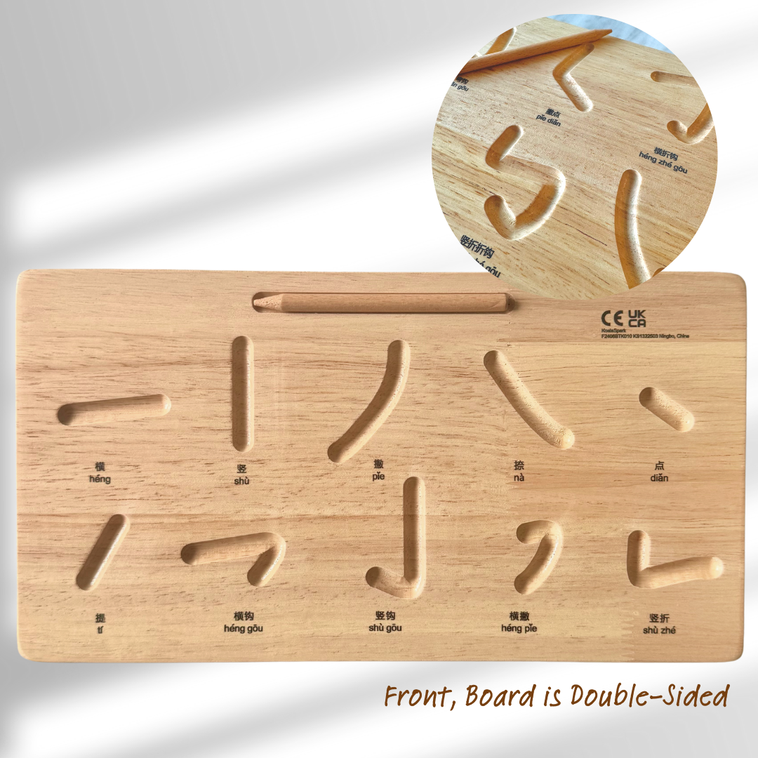 Get the Chinese Yoto Card together with our Chinese Strokes Tracing Board for an additional $12. With 20 strokes to practice, the board is reversible and crafted from safely tested, natural wood.